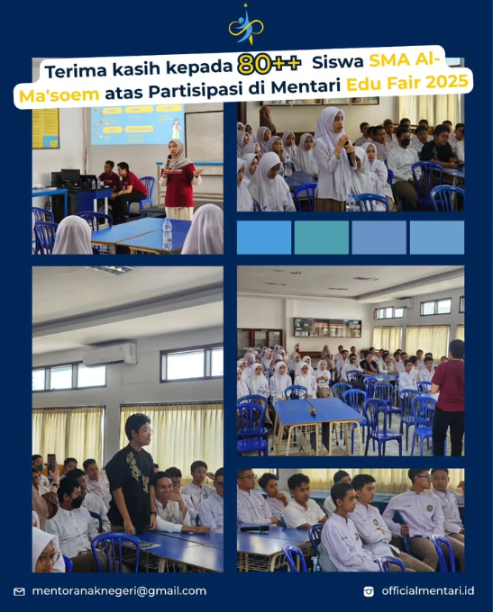 Pada hari Jumat 3 Oktober 2025, Mentari bersama EBI telah sukses menyelenggarakan EDU FAIR :Strategi Sukses Kuliah di Perguruan Tinggi Terbaik Indonesia” di SMA Al-Masoem.
